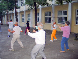 腿站立膝要鬆 兩足齊內肩照 兩胳膊垂體側 食指翹領先天 蠕動稍腹忐忑 如春風拂蓮池 |
