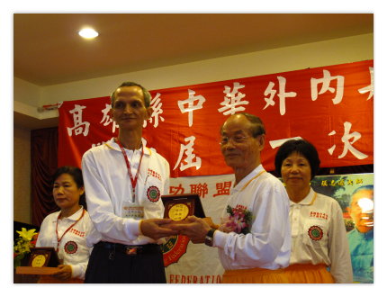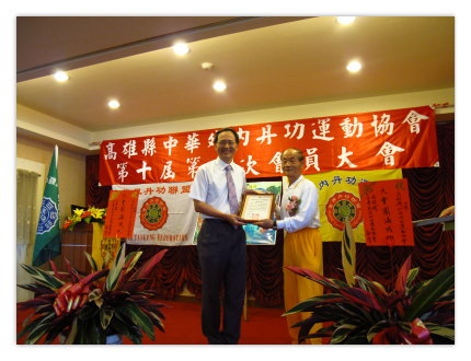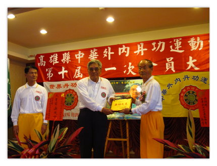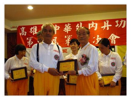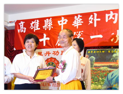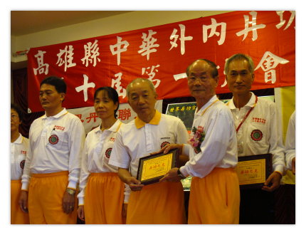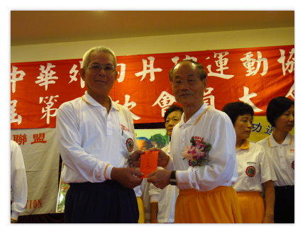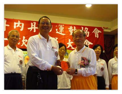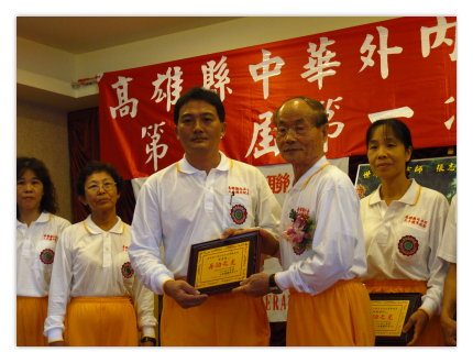 | 績優練功場地頒發獎金 阿蓮國小 代表 謝正實 | 績優練功場地頒發獎金 高楠練習所 代表 邱清 水 | ||
