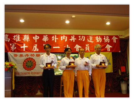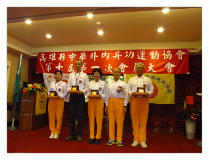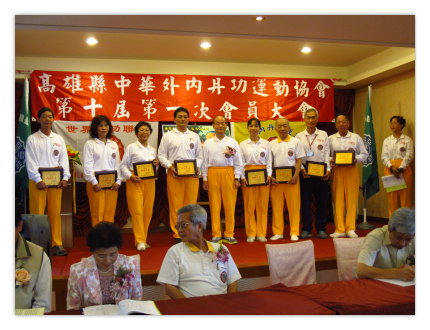 績優練功場地(分30人、40人、50人以上):頒發獎金。 阿蓮國小 :(40人)。代表:謝正實 湖東練習所:(43人)。代表:許順加 三 德社區班:(44人)。代表:柯明泉 橋頭國小班:(35人)。代表:李瑞崇 橋南社區班:(35人)。代表:余金蘭 仕隆教師班:(42人)。代表:李春香: 仕隆社區班:(58人)。代表:洪伯珍 明修善堂班:(70人)。代表:蔡芳定 五林國小班:(33人)。代表:陸春吉 旗山國小班:(30人)。代表:戴秋蓮 內門觀音亭:(40人)。代表:劉祺言 龍潭練習所:(32人)。代表:莊春美 高楠練習所:(35人)。代表:邱清水 中正體育場A(30人)。代表:藍秀玉 |