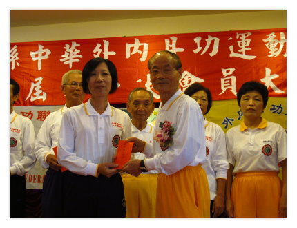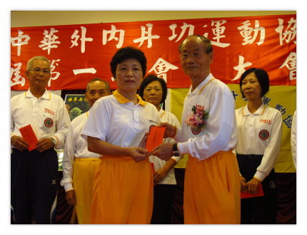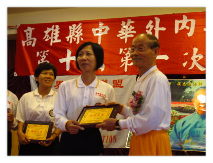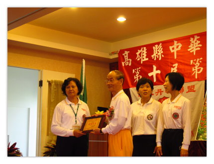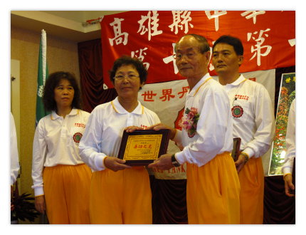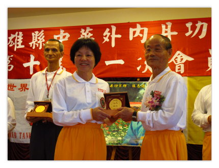 | 績優練功場地頒發獎金 旗山國小班 代表 戴秋蓮 | 績優練功場地頒發獎金 中正體育場A 藍秀玉 | ||