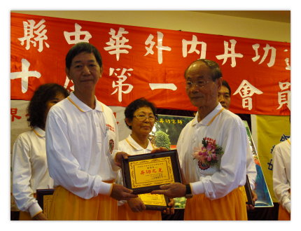 | 績優練功場地頒發獎金 龍潭練習所代表 莊春美 | 績優練功場地頒發獎金 代表合影 | ||